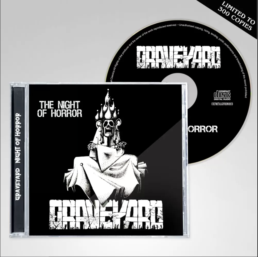 The cult 80’s Canadian band GRAVEYARD need no special introduction to the initiated afficionados of obscure 80’s heavy metal releases. Having gained a cult following thanks to the discovery of their iconic video clip for the metal anthem “Virgin Mary”, showing the band playing live in a church and through their 2 demos “The Night of Horror” and “King of the Night”, it was about time for both of them to be officially reissued on CD and limited edition vinyl.